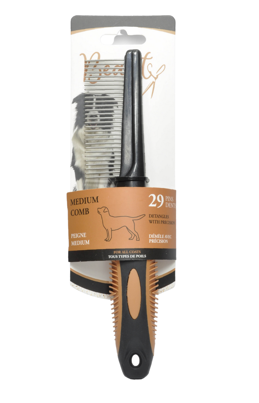 Stainless steel pins help to detangle with precision and to aerate coat. Ideal for pets with long and thick coats. Use this comb regularly to avoid mats and tangles. For all coats.